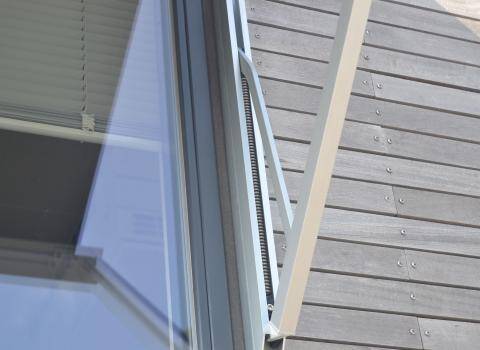 Dit type zonwering blokkeert de laaghangende zon maar geeft nog de mogelijkheid om vrij naar beneden te kijken bij hoger gelegen ramen.